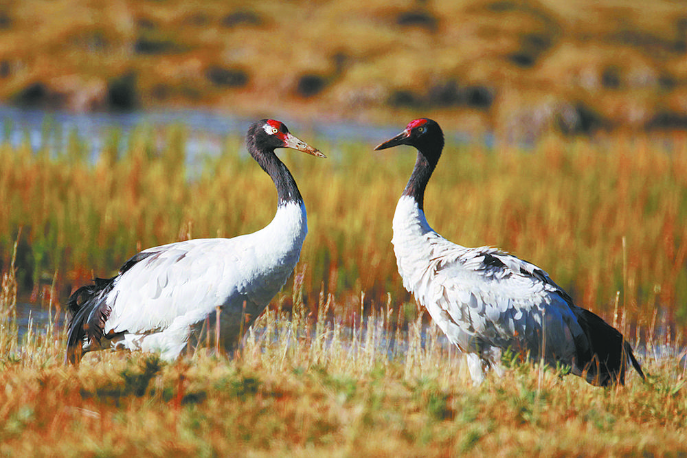 黑頸鶴“夫妻”。青海湖國家級自然保護區(qū)管理局供圖