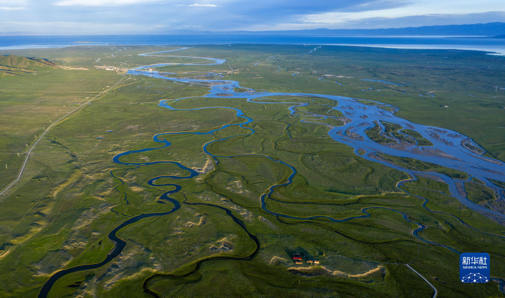這是青海湖布哈河濕地一景(2020年7月10日攝,無人機(jī)照片)。新華社記者 張宏祥 攝