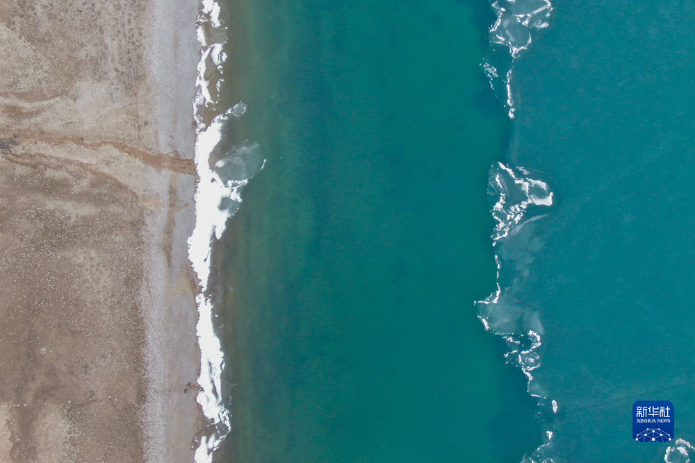 這是2020年4月20日在青海省海南藏族自治州共和縣黑馬河鎮(zhèn)拍攝的青海湖一景(無人機(jī)照片)。新華社記者 張龍 攝