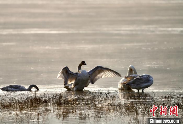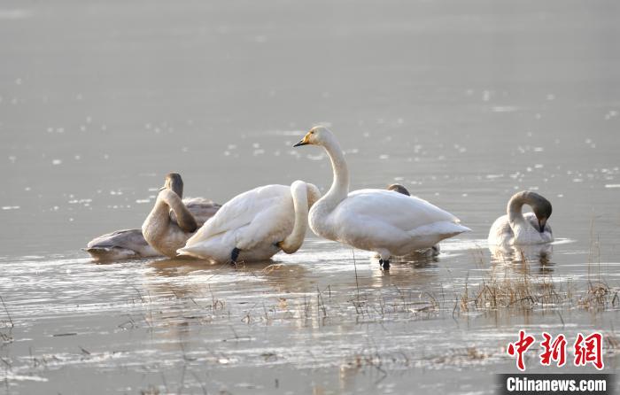 圖為青海省海東市化隆縣黃河流域的天鵝?!±钣穹?攝