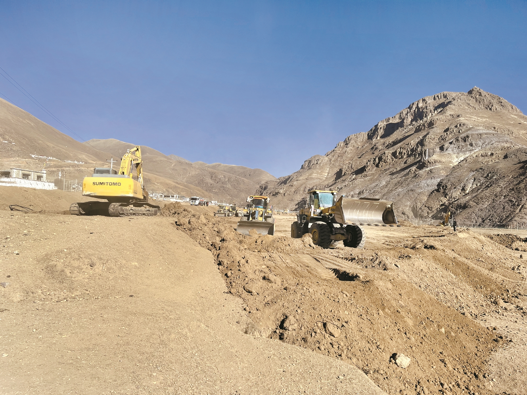 在堆龍德慶區(qū)德慶鎮(zhèn)邱桑村高標準農(nóng)田建設(shè)項目現(xiàn)場,鉤機和推土機等大型機械在田間往來穿梭作業(yè),在藍天白云的映襯下格外耀眼,經(jīng)過村民的“精心雕琢”,一片片坡地變成了一道道梯田。眼見著糧田變“良”田,邱桑村黨總支書記索朗羅布的眼中滿是對明年豐收的憧憬和喜悅。“我們村有2600畝的土地參與到高標準農(nóng)田建設(shè),該項目主要由我們村委會負責,投入了400多位勞力和20多個機械,農(nóng)閑人不閑,他們能在這個冬天有不錯的收入,未來干農(nóng)活也能更加現(xiàn)代化?!?/p>