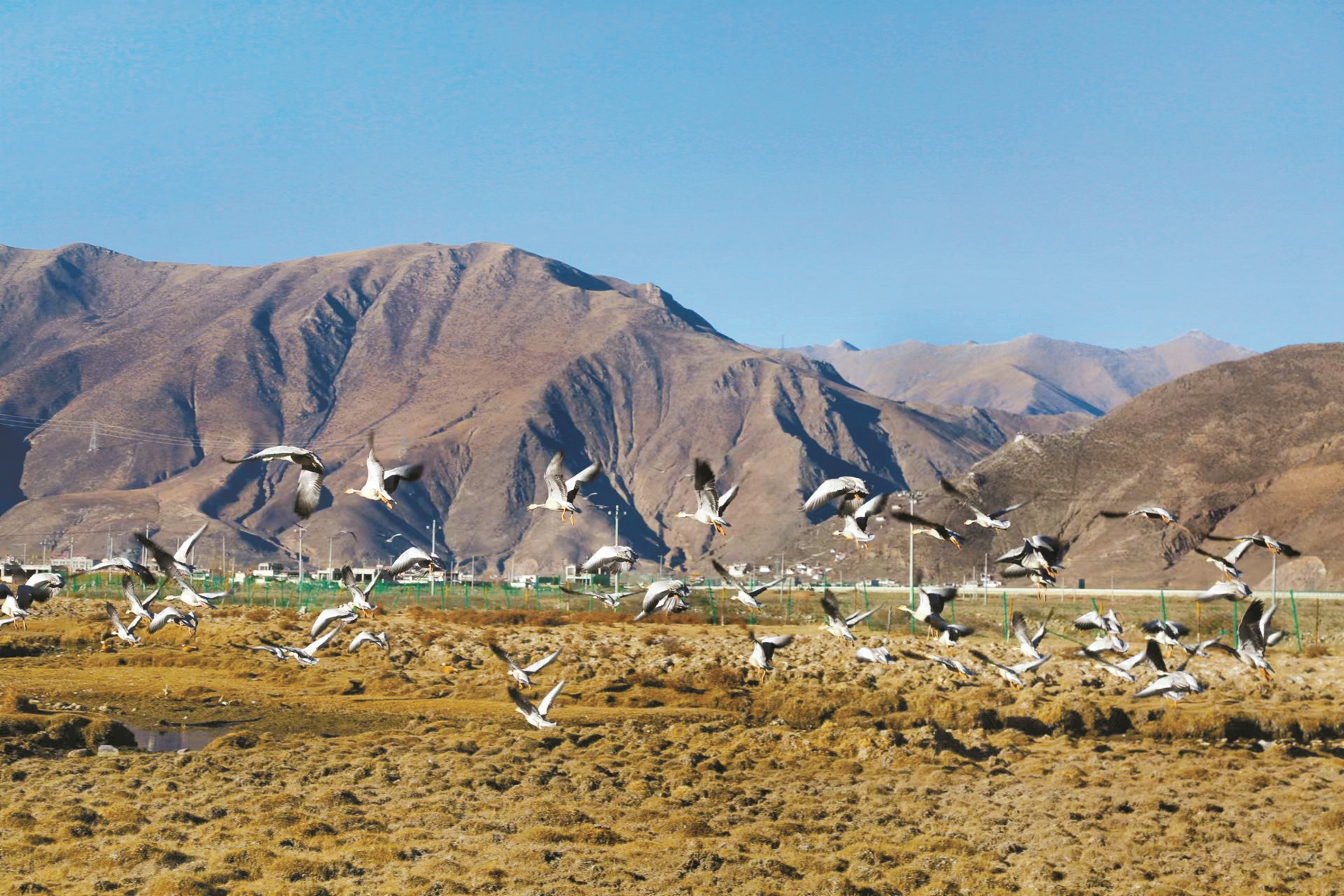 入冬以來,拉薩市墨竹工卡縣工卡帕日濕地生態(tài)功能保護(hù)區(qū)內(nèi),各種候鳥展翅嬉戲,這里已成為候鳥的樂園。今年來此越冬的斑頭雁數(shù)量遠(yuǎn)遠(yuǎn)超出去年同期。