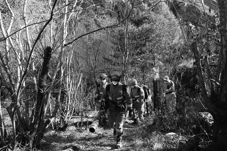 陡峭的懸崖、崎嶇的山路、布滿荊棘的叢林……消防員們背負著沉重的防火裝備翻山越嶺,腳、肩膀被磨出血泡,手、臉被劃出一道道口子,巡山時每名消防員每天會“報廢”一雙襪子。盡管身上傷痕累累,他們卻將裝備維護得很好。亞東駐防分隊分隊長次仁多布拉說:“26斤的防火裝備加上消防員們身上的其他裝備,全部加起來一共有50斤左右。每個裝備定人定位,所有人都像愛護眼睛一樣愛護裝備,保證裝備始終保持良好的戰(zhàn)備狀態(tài)。”