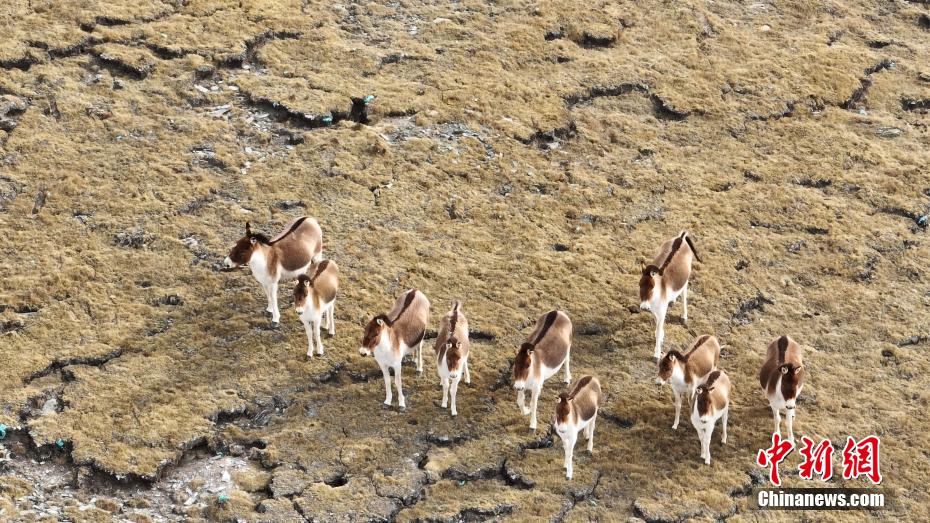 高原初春,馬鹿、藏野驢、藏狐等野生動(dòng)物在祁連山國家公園青海片區(qū)天峻縣境內(nèi)草場上覓食、棲息,悠閑自在。青海省海西蒙古族藏族自治州天峻縣大部地處祁連山國家公園青海片區(qū),近年來,該縣開展生態(tài)環(huán)境綜合治理,生態(tài)環(huán)境持續(xù)改善,珍稀野生動(dòng)物種群數(shù)量不斷增加。圖為航拍成群的藏野驢在天峻縣草場上覓食棲息。