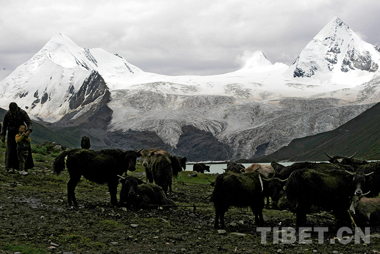 這是比如縣薩普冰川下放牧的牦牛群(唐召明2014年7月10日攝)