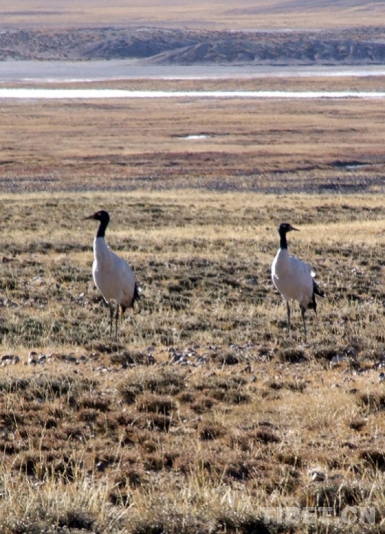 這是棲息在申扎縣濕地的國家一級保護動物黑頸鶴(唐召明2006年攝)