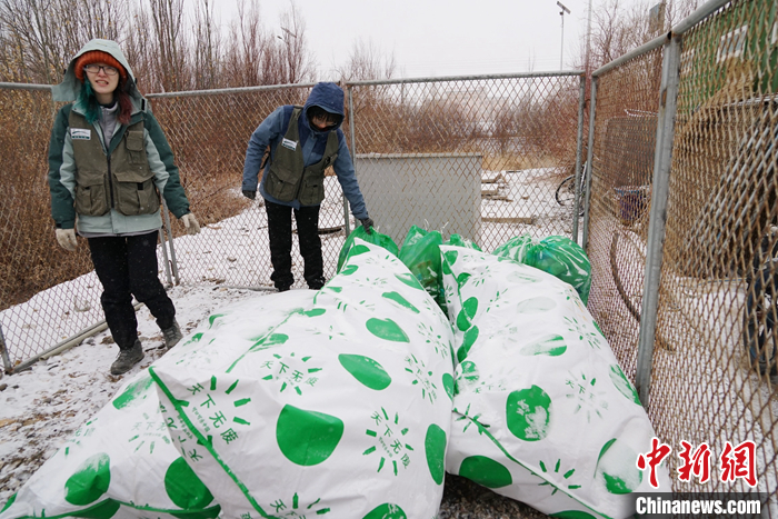 資料圖為3月24日,青海省海西州格爾木驛的志愿者將垃圾分類后進行打包。 中新社記者 馬銘言 攝