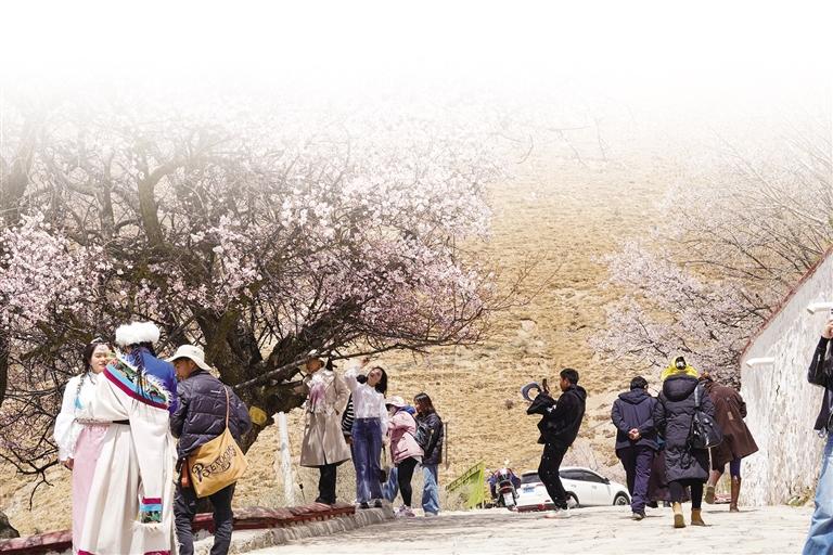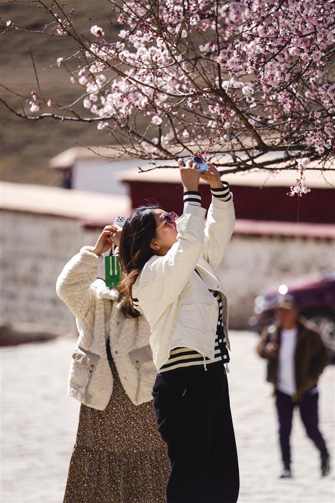 帕邦喀距離拉薩市區(qū)不到一小時(shí)車(chē)程,每年桃花盛開(kāi)的時(shí)候,帕邦喀便成為人們賞桃花、踏春游的熱門(mén)景點(diǎn)。昔日里略顯安靜的帕邦喀此時(shí)也因賞花的人們熱鬧起來(lái)。帕邦喀桃花盛開(kāi)的美景也在微信朋友圈、短視頻平臺(tái)等社交媒體上刷屏,吸引著大批市民游客拍照打卡。
