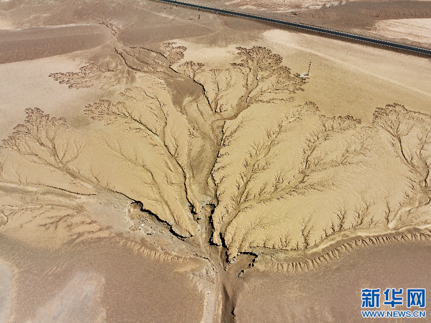 這是4月8日拍攝的位于阿里地區(qū)改則縣的“大地之樹”景觀(無人機照片)。 新華網(wǎng)發(fā) 曹枝清 攝
