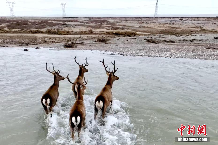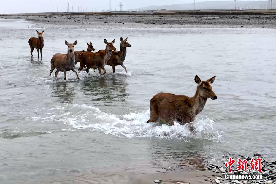 雌性馬鹿結(jié)伴過河。才新木加 攝