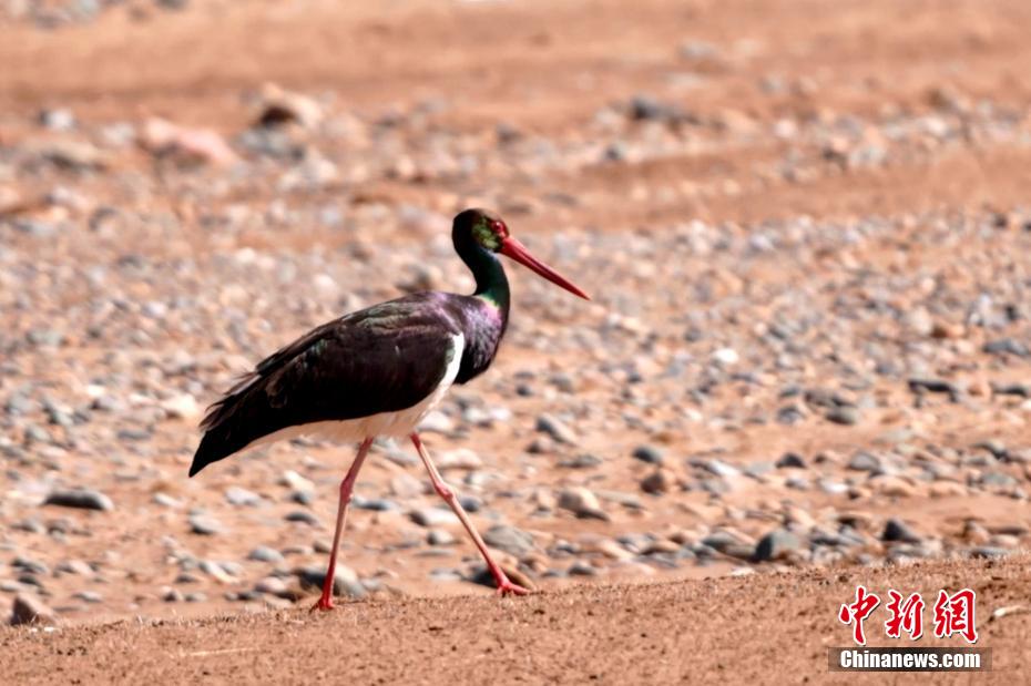 近日,攝影師在位于祁連山國家公園青海片區(qū)的青海省海北藏族自治州祁連縣阿柔鄉(xiāng)境內(nèi)拍攝到兩只黑鸛愜意覓食、翱翔。[詳細(xì)] -