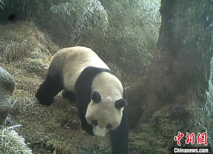 紅外相機(jī)拍攝到的野生大熊貓?!〈笮茇垏夜珗@平武老河溝片區(qū)供圖