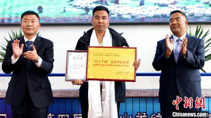 圖為為“日土羊絨”競(jìng)拍中標(biāo)企業(yè)頒發(fā)授權(quán)書。日土融媒體中心供圖