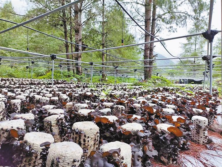圖為格當(dāng)鄉(xiāng)布龍村林下種植場(chǎng)種植的黑木耳。郎玲 記者 王敏 攝