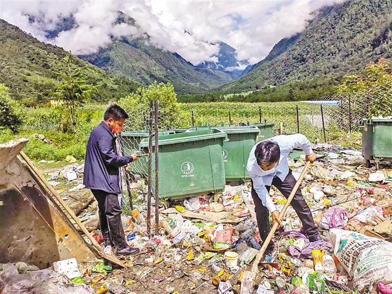 林芝市墨脫縣格當(dāng)鄉(xiāng)布龍村組織人員清理垃圾堆放點(diǎn)。記者 王敏 通訊員 郎玲 攝