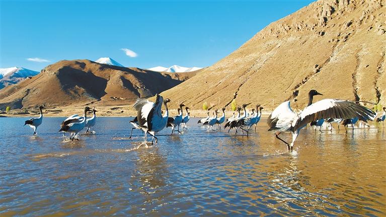 • 西藏那曲:黑頸鶴悠然覓食