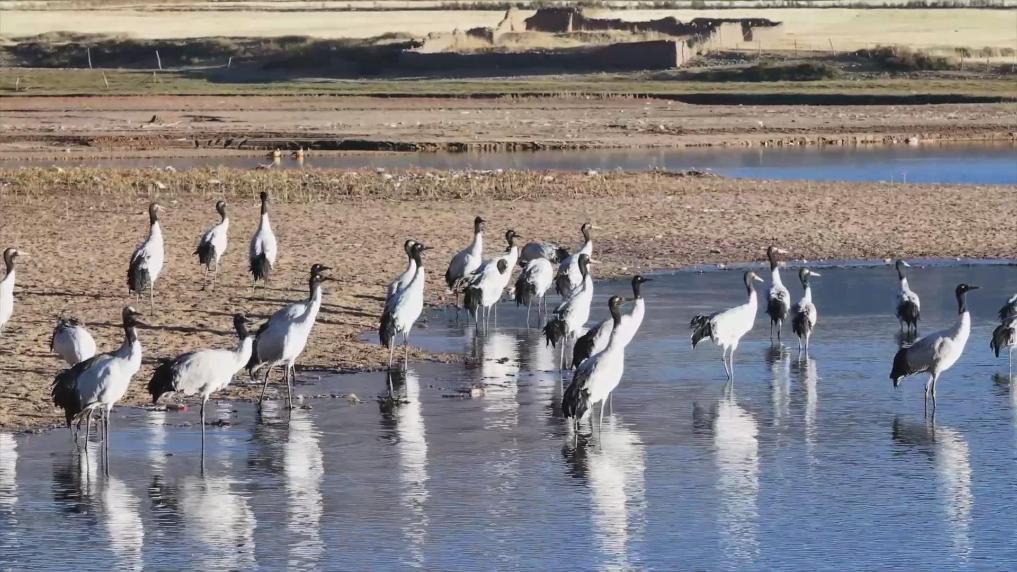 黑頸鶴是國家一級保護(hù)動(dòng)物,主要棲息在海拔2500米至5000米的高原、草甸、沼澤地帶。拉薩北部的林周縣平均海拔約4200米,是黑頸鶴的主要越冬地之一。