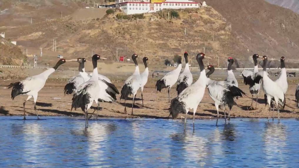 西藏林周:迎來今年首批越冬黑頸鶴