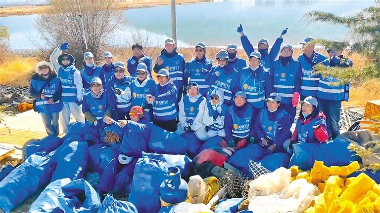 圖為“美麗公約”拉薩格?;ㄖ驹阜贞犜诶_河城區(qū)段清理兩岸垃圾。記者 格桑倫珠 攝