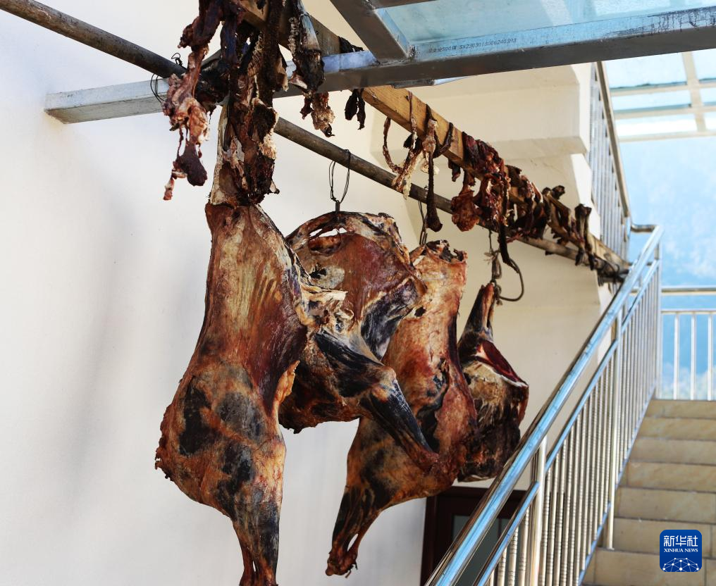 永寧村村民家里掛著風(fēng)干牛羊肉(1月7日攝)。新華社記者 關(guān)明輝 攝