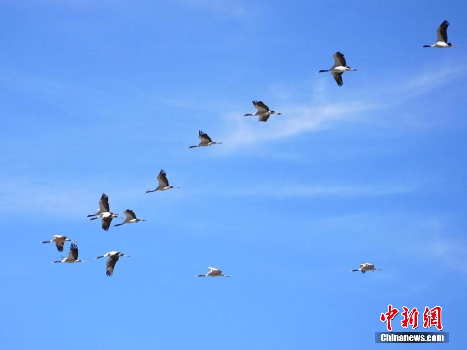 西藏米林迎來大批黑頸鶴越冬
