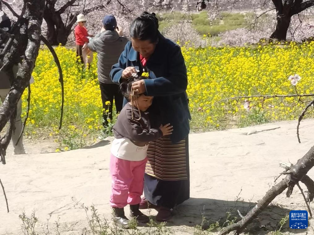 在桃花盛開(kāi)的嘎拉村,游客正在賞花游玩(3月30日攝)。新華社記者 魏冠宇 攝
