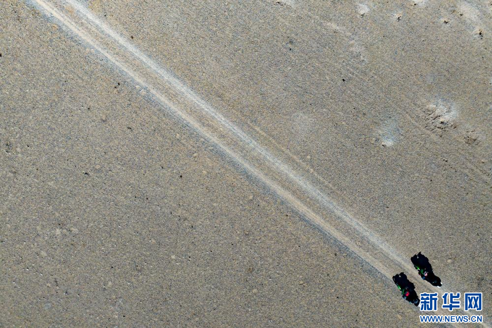 4月14日,野保員在色林錯(cuò)國家級(jí)自然保護(hù)區(qū)進(jìn)行日常巡邏(無人機(jī)照片)。新華網(wǎng) 旦增努布 攝