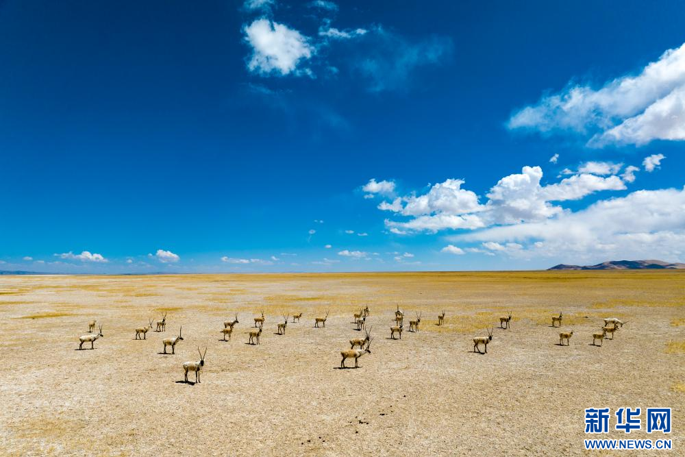4月14日,在色林錯(cuò)國家級(jí)自然保護(hù)區(qū)拍攝的藏羚羊。新華網(wǎng) 旦增努布 攝