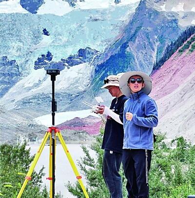 成都理工大學(xué)科研人員使用無(wú)人機(jī)對(duì)冰川進(jìn)行熱紅外和正射影像作業(yè)。葉川攝/光明圖片