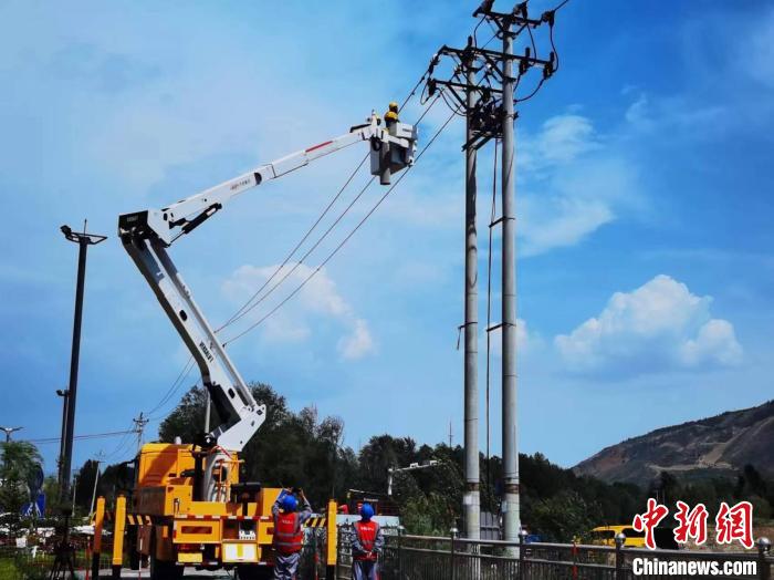 圖為電力人員正在架設(shè)鳥巢。國網(wǎng)青海省電力公司供圖