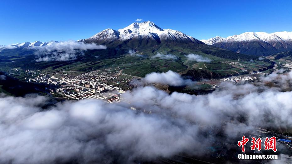 祁連山現(xiàn)低空云海:山間小城薄云繚繞宛若仙境