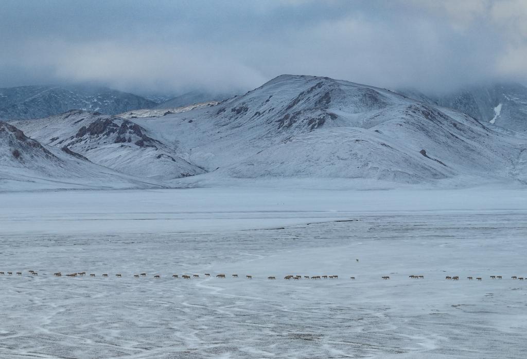 6月15日清晨在羌塘國家級自然保護區(qū)拍攝的遷徙中的母藏羚羊。