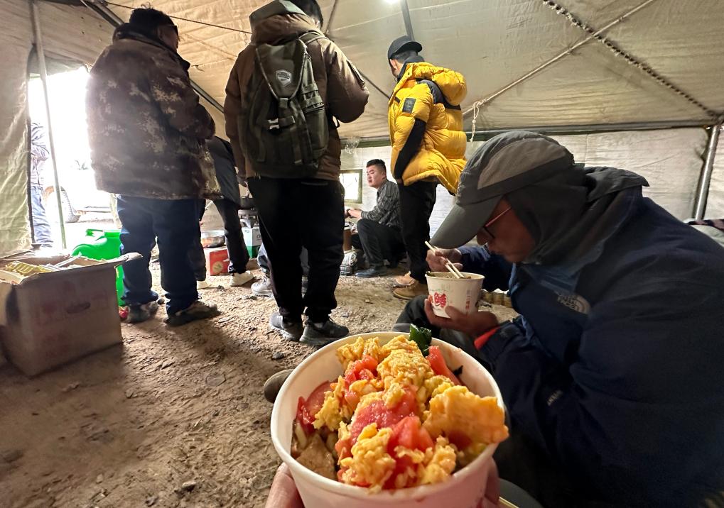 6月13日,記者在享用帳篷里的晚餐。新華社記者 費茂華 攝