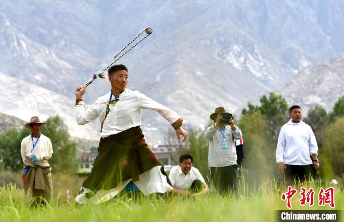 展繩、裹石、拋繩……一氣呵成的動作,古朵里的石頭拋物線般落在遠(yuǎn)處,6月23日拉薩首屆農(nóng)牧民運動會古朵比賽現(xiàn)場充滿了歡笑。