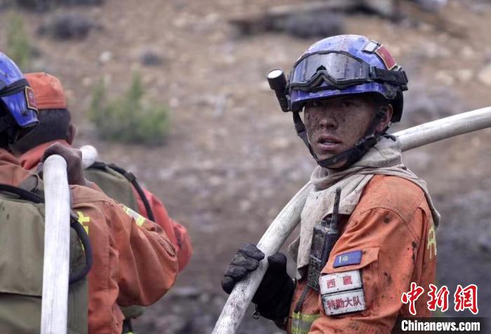 圖為滅火救援專業(yè)“兵王”蘇德超在5.31滅火救援中。西藏森林消防總隊(duì)供圖