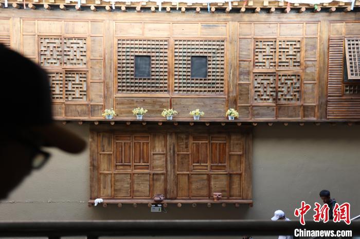 7月24日,參加“中國式現(xiàn)代化的萬千氣象·網(wǎng)絡(luò)名人青海行”活動的網(wǎng)絡(luò)名人,抵達(dá)江河源頭青海玉樹藏族自治州,在玉樹州博物館一覽自然與人文之美。玉樹州博物館是玉樹地震災(zāi)后重建十大標(biāo)志性建筑之一,分為序廳、自然展區(qū)、人文展區(qū)、臨時(shí)展廳。其通過實(shí)物標(biāo)本等方式,展示了三江源和可可西里的野生動物、草地、森林,以及玉樹州的歷史、建筑、服飾、飲食等。圖為玉樹州博物館展示的建筑文化。中新社記者 張?zhí)砀?攝