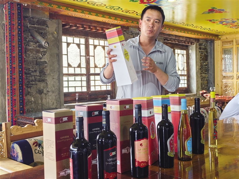 帕竹酒莊負(fù)責(zé)人介紹各類品種的葡萄酒。