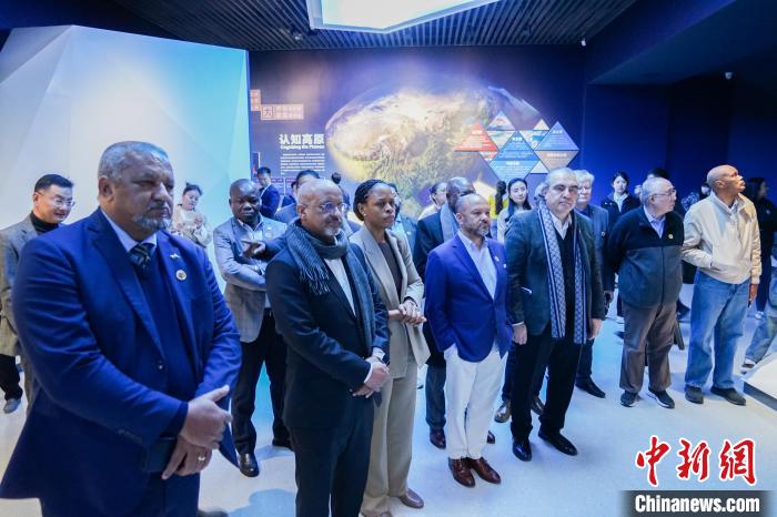 圖為代表團(tuán)一行在青海省自然資源博物館內(nèi)參觀。中新社記者 馬銘言 攝