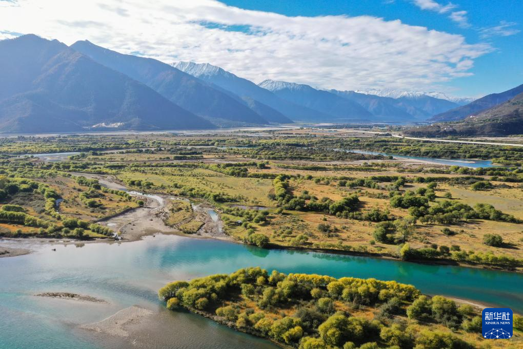 這是在林芝雅尼國(guó)家濕地公園尼洋河畔拍攝的生態(tài)監(jiān)測(cè)系統(tǒng)(10月24日攝,無(wú)人機(jī)照片)。新華社記者 劉天宇 攝