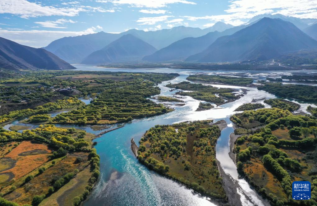 這是10月24日在西藏林芝雅尼國(guó)家濕地公園內(nèi)拍攝的尼洋河(無(wú)人機(jī)照片)。新華社記者 李賀 攝