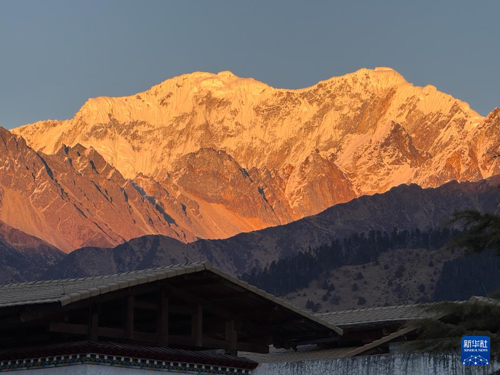 這是12月16日在西藏林芝市魯朗國際旅游小鎮(zhèn)拍攝的日照金山(手機(jī)照片)。新華社記者 丁汀 攝