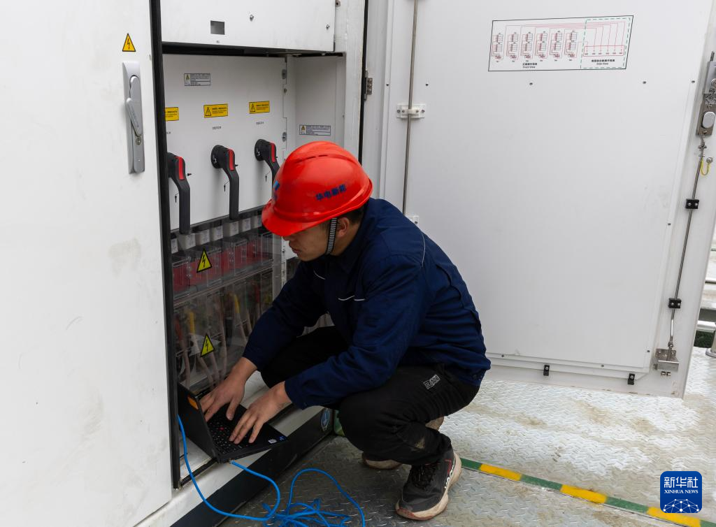 在華電西藏才朋光伏電站升壓站,工作人員正在檢查設備。新華社記者姜帆 攝