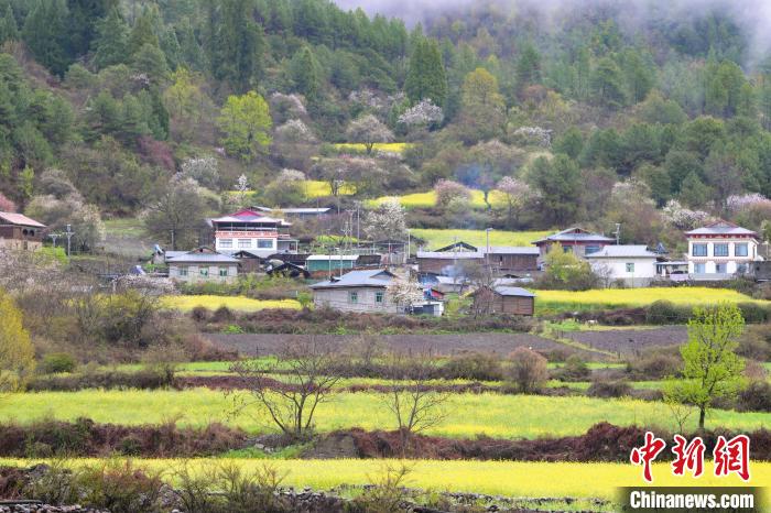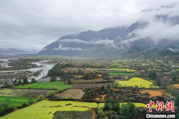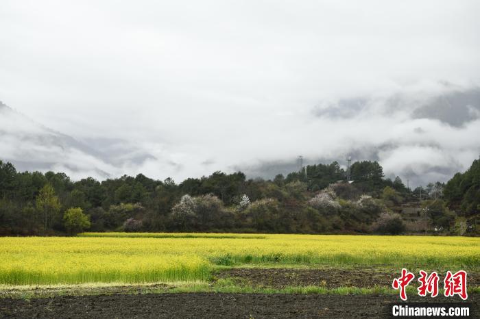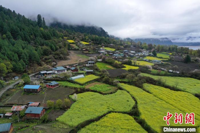 4月4日,西藏林芝市波密縣易貢鄉(xiāng)在雨后迎來絕美景致。云霧繚繞在群山之間,金黃的油菜花與森林、易貢湖、藏式民居、碧綠的青稞田相互映襯,宛如仙境。中新社記者 貢嘎來松 攝