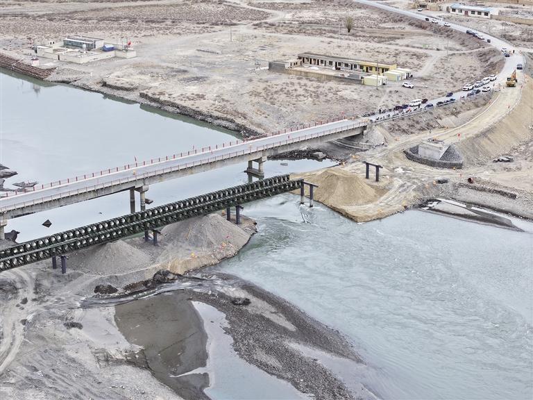 據(jù)拉孜雅江大橋臨時性保通鋼架橋工程項目總工程師、日喀則公路事業(yè)發(fā)展和應急保障中心拉孜養(yǎng)護段副段長次旦桑珠介紹,這是一座下承式鋼架橋,長144米,共5個橋墩,目前已完成全部橋墩、95%的上部結(jié)構(gòu)拼裝、橋梁引道及防護設施的施工,后續(xù)馬上推進其余上部結(jié)構(gòu)和橋面鋪裝。施工人員將全力以赴開展工作,確保鋼架橋如期完工后盡快投入使用,以保障日喀則往返薩嘎、昂仁、阿里等地的重要物資運輸車輛順暢通行。