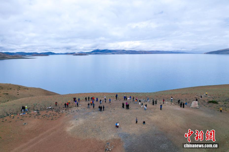 7月22日,游客游覽拉昂錯。瑪旁雍錯與拉昂錯位于西藏阿里地區(qū)普蘭縣境內(nèi),兩湖僅有一堤之隔,卻擁有不同的地理特征和咸淡水之分,因而分別被譽為“圣湖”與“鬼湖”。每年夏天,兩湖與附近的岡仁波齊一道,吸引眾多游客前來賞景游覽。(無人機照片)