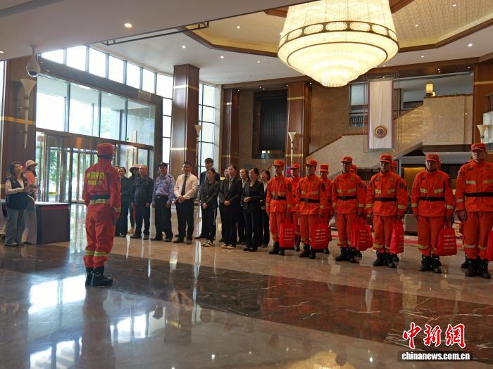 圖為消防隊(duì)員正在酒店宣傳防災(zāi)減災(zāi)知識(shí)。林芝市森林消防支隊(duì)供圖
