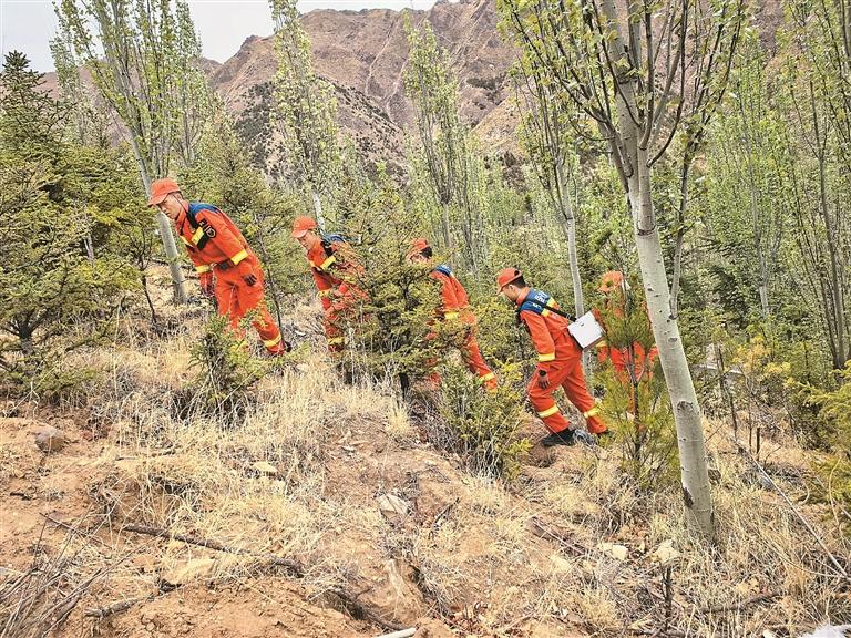 拉薩市森林消防大隊官兵在南山公園執(zhí)行巡邏任務(wù)。
