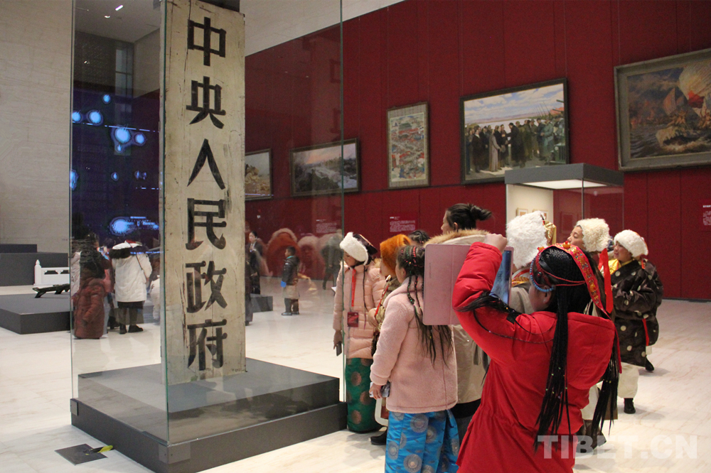 圖為“萌娃”們參觀中華人民共和國成立初期曾懸掛在北京中南海新華門內(nèi)的中央人民政府木牌 攝影:李元梅