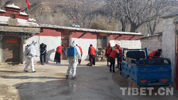 中國(guó)西藏網(wǎng)訊 “如果沒有特殊情況,近期盡量少出門、少聚集,提倡微信、電話等拜年……”這是日前西藏自治區(qū)山南市加查縣安繞鎮(zhèn)黨支部書記達(dá)瓦在跟村委宣傳工作微信群安排工作。與此同時(shí)幾名戴口罩裝備統(tǒng)一的黨員志愿者紛紛來到村委會(huì)前,在安繞鎮(zhèn)熱果村“兩委”班子和縣“四講四愛”活動(dòng)辦工作人員的帶領(lǐng)下,開始了村莊清潔、消毒行動(dòng)。