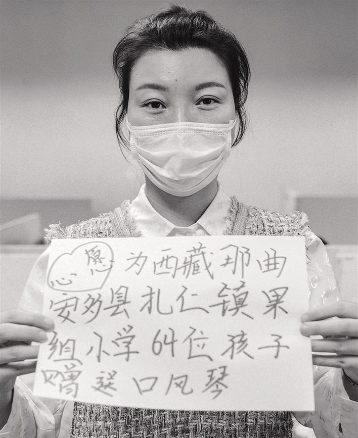 3月6日,為了讓奮戰(zhàn)在抗疫一線的英雄感受到社會(huì)的敬意,阿里巴巴天天正能量聯(lián)合全國(guó)媒體發(fā)起了“共圓英雄夢(mèng)”活動(dòng)。記者詢問柏雪有什么心愿,她說:“我想給西藏那曲市安多縣扎仁鎮(zhèn)果組小學(xué)的64名孩子送口風(fēng)琴!”